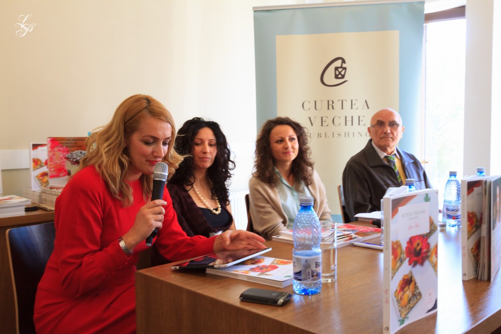 Lansarea volumului “Reţete Vegane Fără Foc” de Ligia Pop, moderat de Geta Ungureanu. În imagine: Geta Ungureanu, Ligia Pop, Anca Ignat, Ion Pop.
