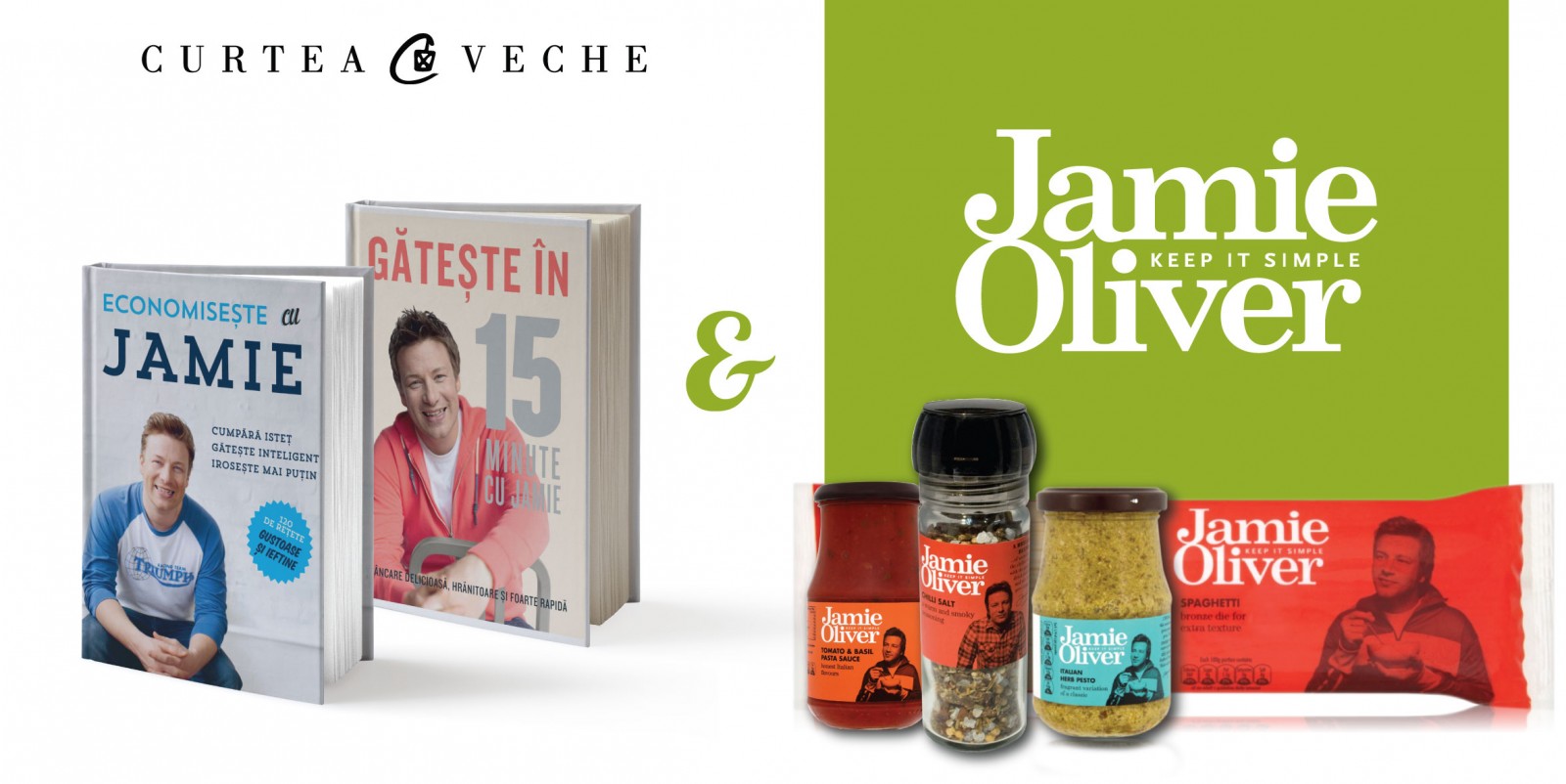 – un set format din produse originale Jamie Oliver: pesto Italian, sos de paste cu roșii și busuioc, spaghetti, o râșniță de sare cu chili afumat. Produsele Jamie Oliver sunt disponibile în rețelele Auchan, Cora, Mega Image, Selgros din întreaga țară.