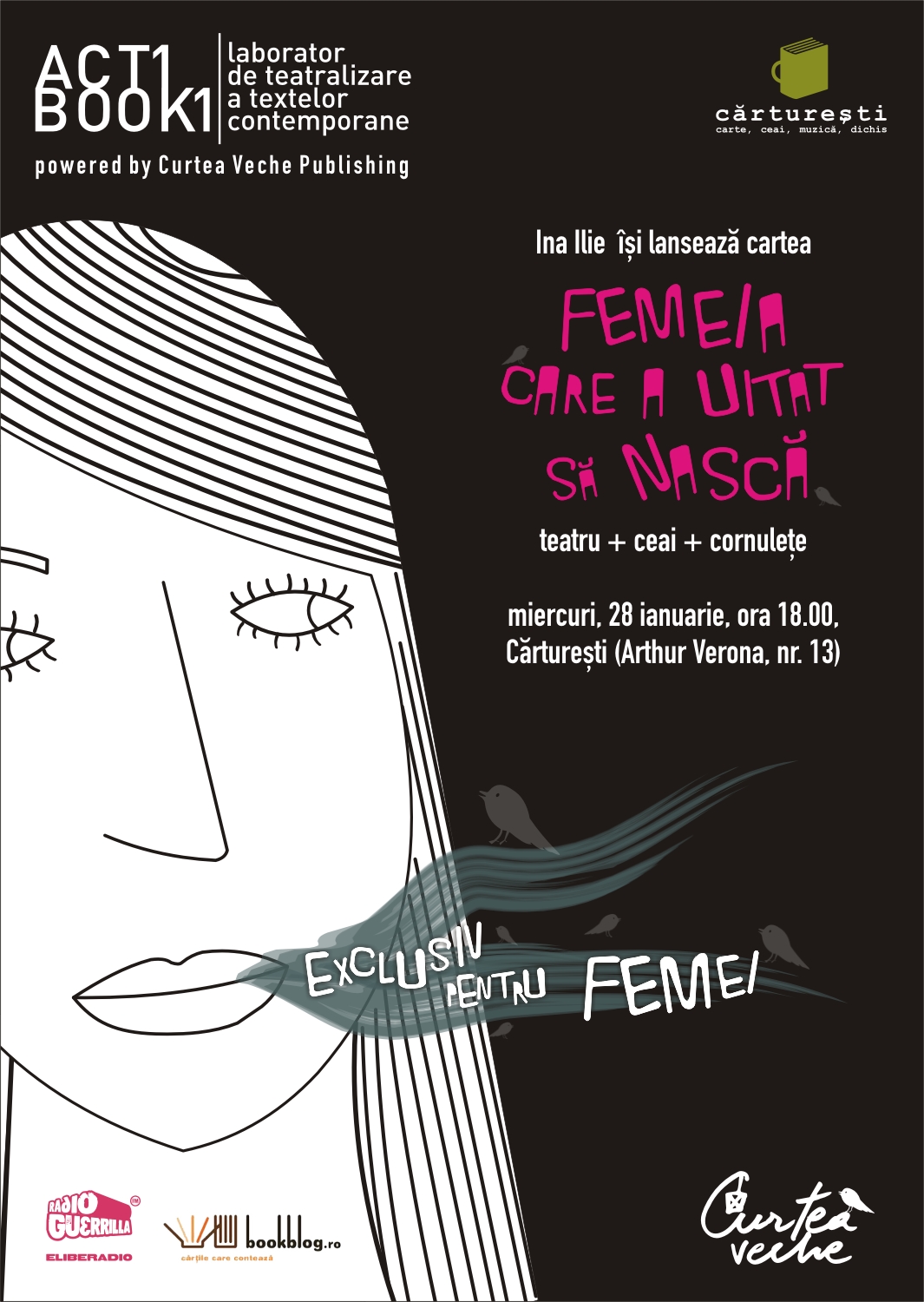 Daca ai peste niste ani, sigur o stii pe Ina de pe vremea cand era VJ la Atomic. The mommy-to-be, prolifica pe mai multe planuri, a scris si o carte de short stories, pe care o lanseaza miercuri in ceainaria de la Carturesti – Femeia care a uitat sa nasca (ed. Curtea Veche). Sunt povesti urbane ale unei femei puternice, dar pe care vrei sa le citesti stand ghemuit pe un fotoliu.