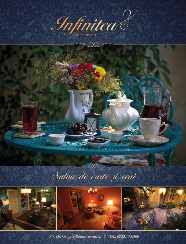 Atunci când pulsul citadin devine prea vibrant, la Ceainăria Infinitea te poți relaxa într-o atmosfera plină de rafinament, înconjurat de un decor clasic cu accente baroce. Descoperă grădina de vară, o oază de liniște în inima orașului, care oferă un cadru intim natural ce te duce cu gândul la grădinile suspendate ale Semiramidei. Te vei bucura de aromele ceaiurilor Infinitea, o paletă colorată de dulcețuri, sucuri de fructe proaspete și prăjituri delicioase de casă într-o ambinanță muzicală pe ritmuri clasice și de jazz.