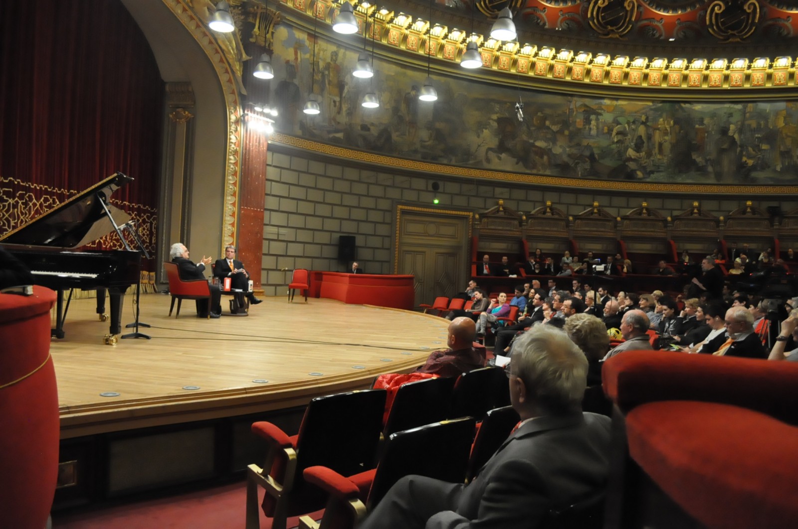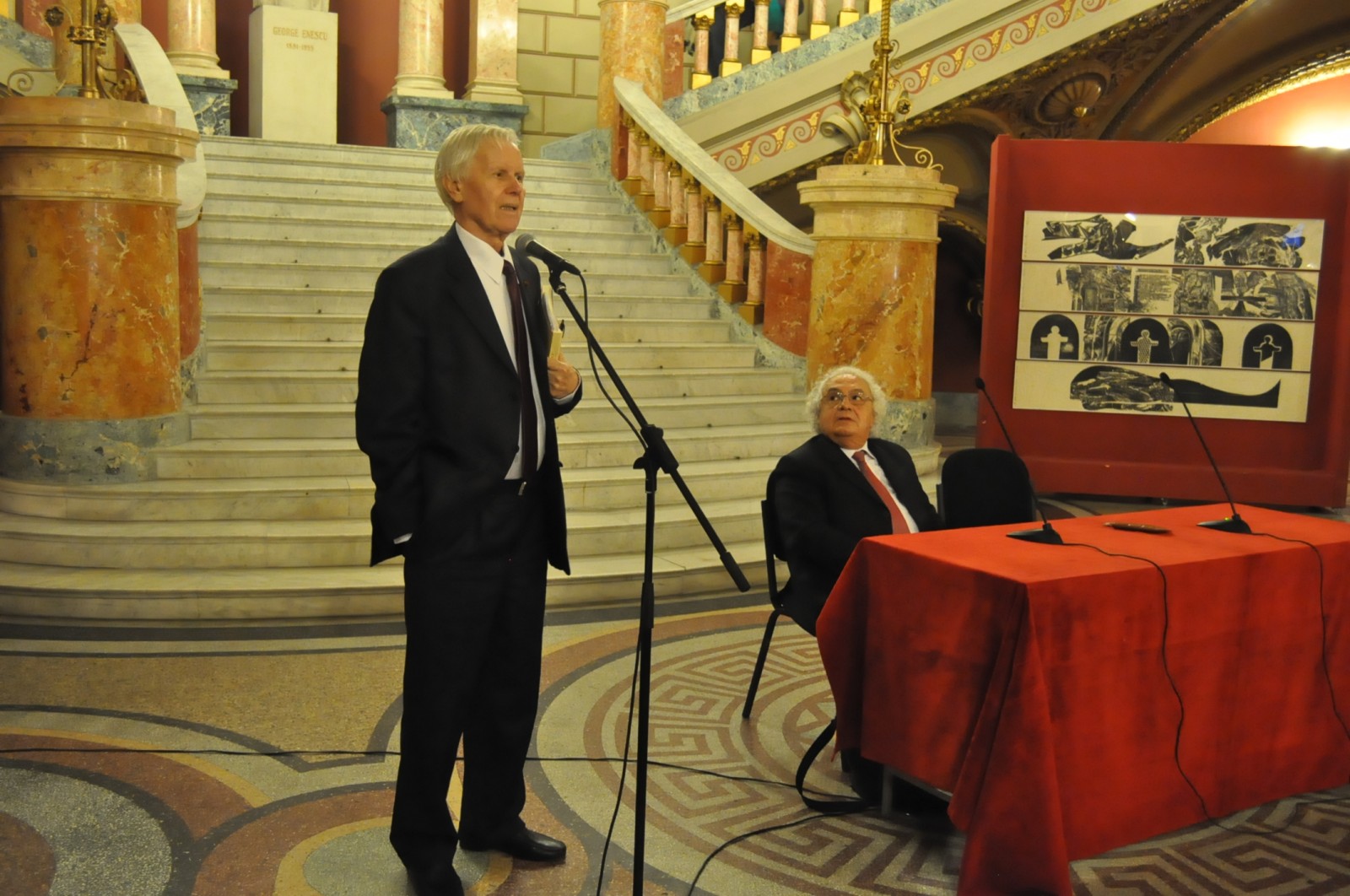 Luni, 15 Aprilie, cunoscutul fizician şi folosif, membru de onoare al Academiei Române şi apreciat autor Curtea Veche Publishing Basarab Nicolescu a susţinut la Filarmonica “George Enescu” o conferinţă pe tema transdisciplinarităţii, în dialog cu Adrian Cioroianu, decanul Facultăţii de Istorie din cadrul Universităţii Bucureşti.