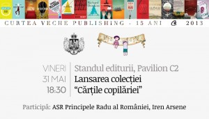 ASR Principele Radu al României va fi prezent vineri, 31 mai, de la ora 18.30, la standul Curtea Veche Publishing de la Bookfest, unde va prezenta seria “Cărțile copilăriei” și va lansa noutățile colecției “Casa Regală”. Alteța Sa Regală este unul dintre invitații speciali ai editurii, care marchează la această ediție a târgului împlinirea a 15 ani de la înființare. Programul zilei de vineri, 31 mai, va fi completat de lansarea volumului “Turnul” de Uwe Tellkamp: