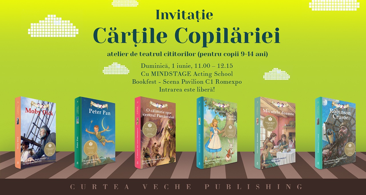 Duminică, 1 iunie, între 11.00 – 12.15, cititorii cu vârsta între 9 și 14 ani sunt așteptați la “Cărțile copilăriei” – atelier de Teatrul Cititorilor coordonat de MINDSTAGE Acting School, pe scena Pavilionului C1.