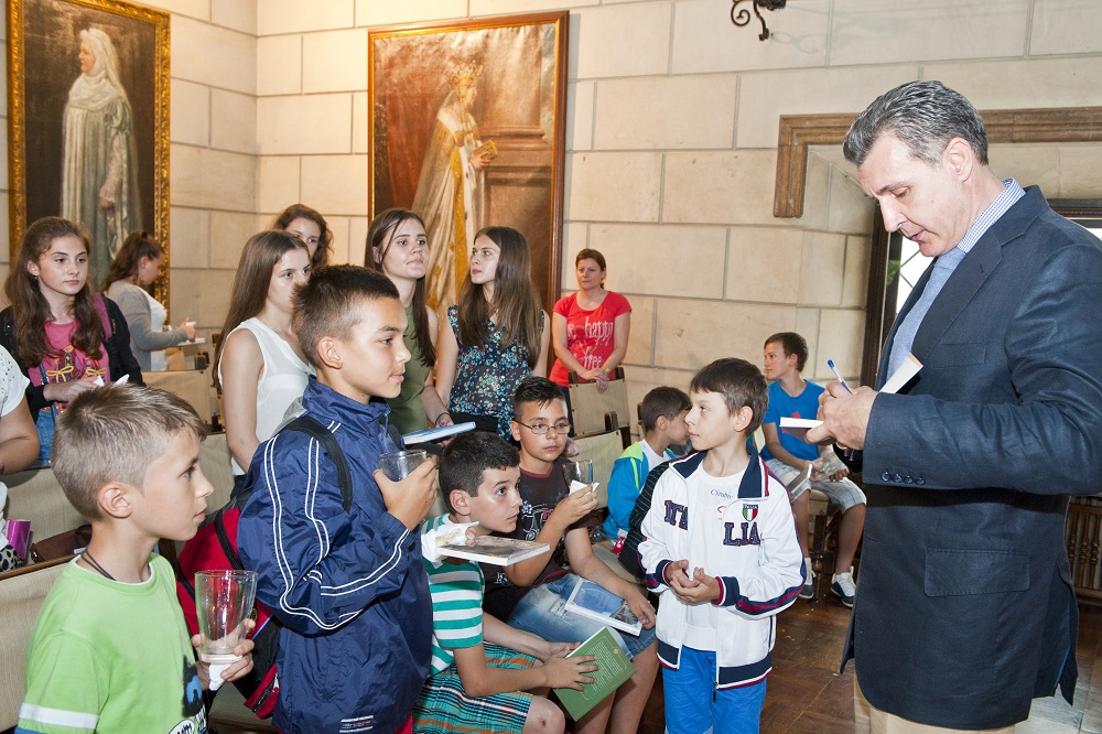 Profesorii și elevii au avut posibilitatea să viziteze saloanele Palatului Elisabeta (Salonul Mihai I, Galeria de artă, Salonul Carol I și Elisabeta, Salonul Alb, Biroul Majestății Sale și Sufrageria Mare) fiind apoi invitați în Sala Regilor, unde au fost întâmpinați de Alteța Sa Regală. La finalul vizitei, elevii au primit cărți din colecția “Cărțile Copilăriei”.