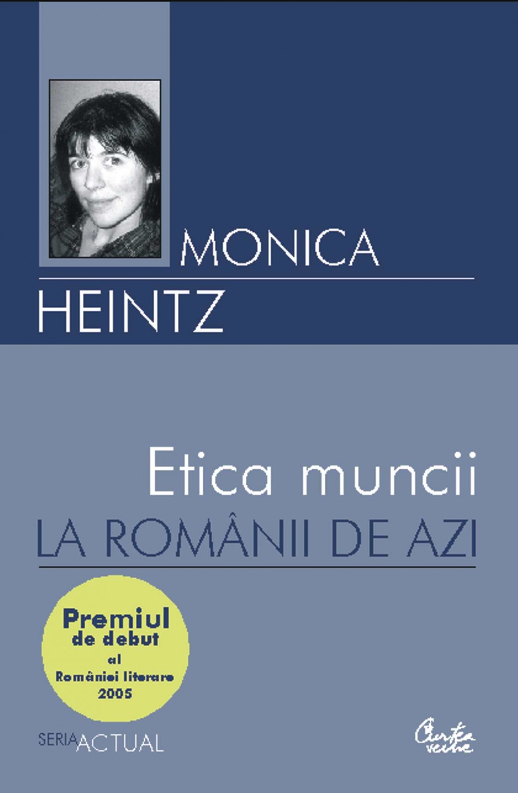 Etica muncii la românii de azi de Monica Heintz. Cartea a avut două ediții și a obținut premiul de debut al României Literare. De ce a avut cartea atâta succes veți deduce după titlu. Lua în brațe un blid foarte fierbinte. Și-l lua fără mănuși. Sau mă rog, cu niște mănuși de antropolog. La 10 ani de la debut Monica Heintz este conferențiar universitar și șef de catedră la Nanterre, PARIS, actriță, regizoare și… cei patru copii sunt acum aproape oameni mari!