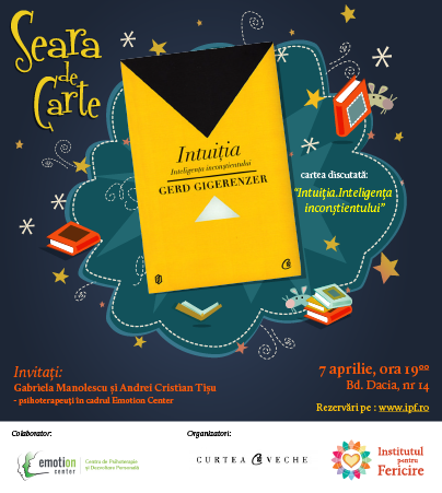 Vedeta primei Seri de Carte va fi lucrarea lui Gerd Gigerenzer, Intuiția. Inteligența Inconștientului (Curtea Veche Publishing, 2012), parte din colecția Biblioterapia, iar invitați speciali vor fi Gabriela Manolescu și Andrei Cristian Tișu, psihologi și psihoterapeuți de formare cognitiv – comportamentală în cadrul centrului de psihoterapie și dezvoltare personală Emotion Center.