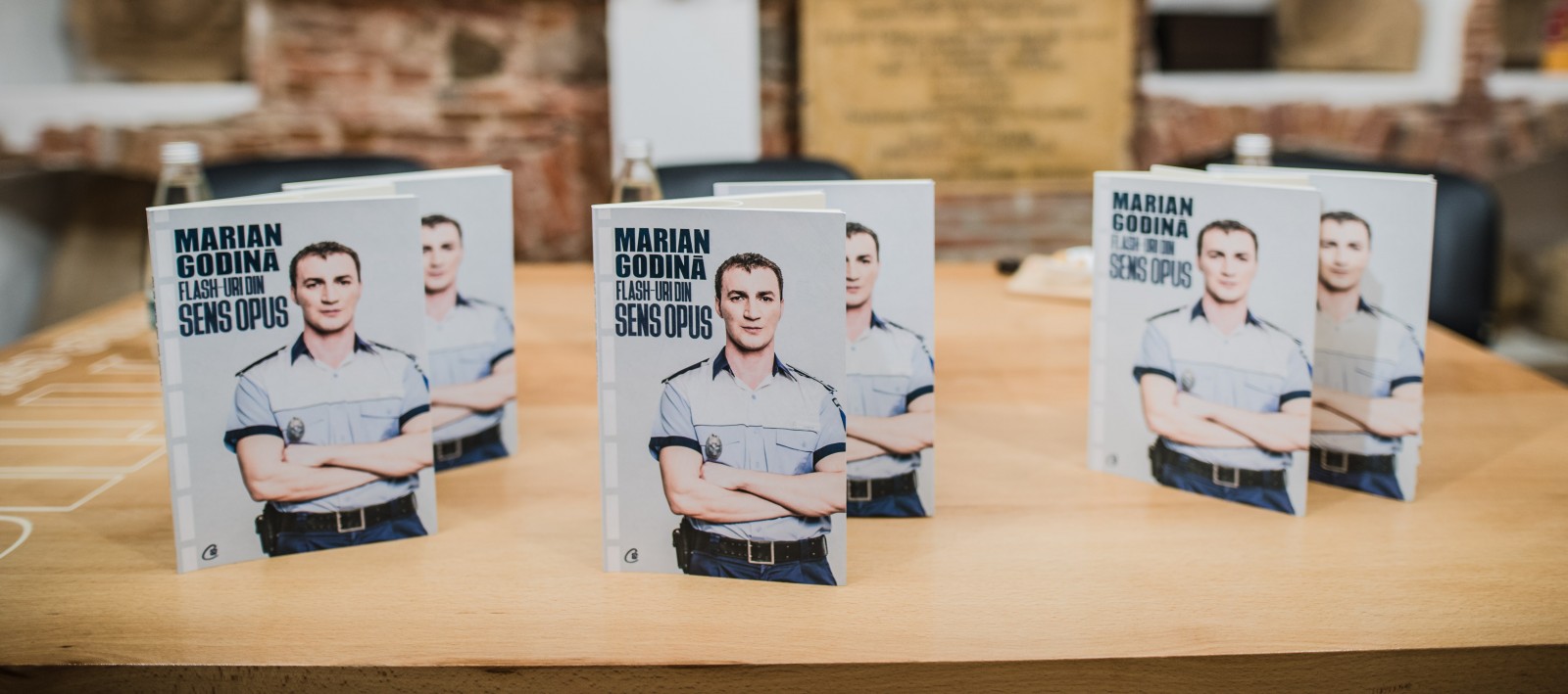 Marian Godină şi-a prezentat marţi, 15 martie 2016, volumul de debut „Flash-uri din sens opus” la Librăria Habitus din Sibiu. În cadrul lansării au vorbit Marian Godină, autorul cărţii, Maria Desmirean, director executiv la Curtea Veche Publishing şi Vladimir Barbu, care a fost gazda evenimentului şi a moderat discuţiile. După prezentarea cărţii a avut loc şi o scurtă sesiune de autografe.