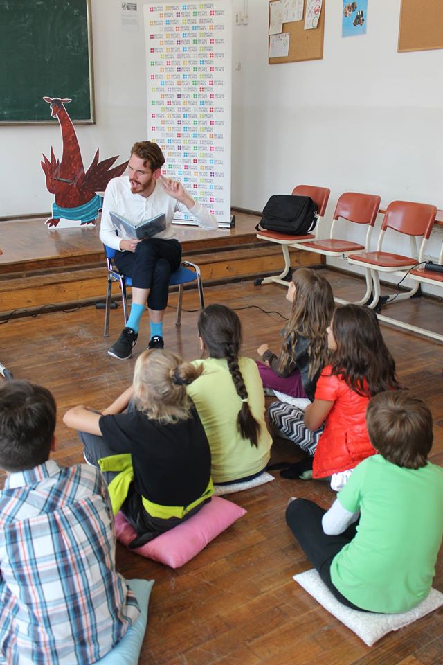 Am ajuns și în sala unde auzim pe cineva vorbind limba engleză: este David Hughes de la British Council Romania, cel care le-a arătat copiilor că o poveste nu este niciodată la fel, că în imaginația noastră stă puterea de a schimba firul evenimentelor.
