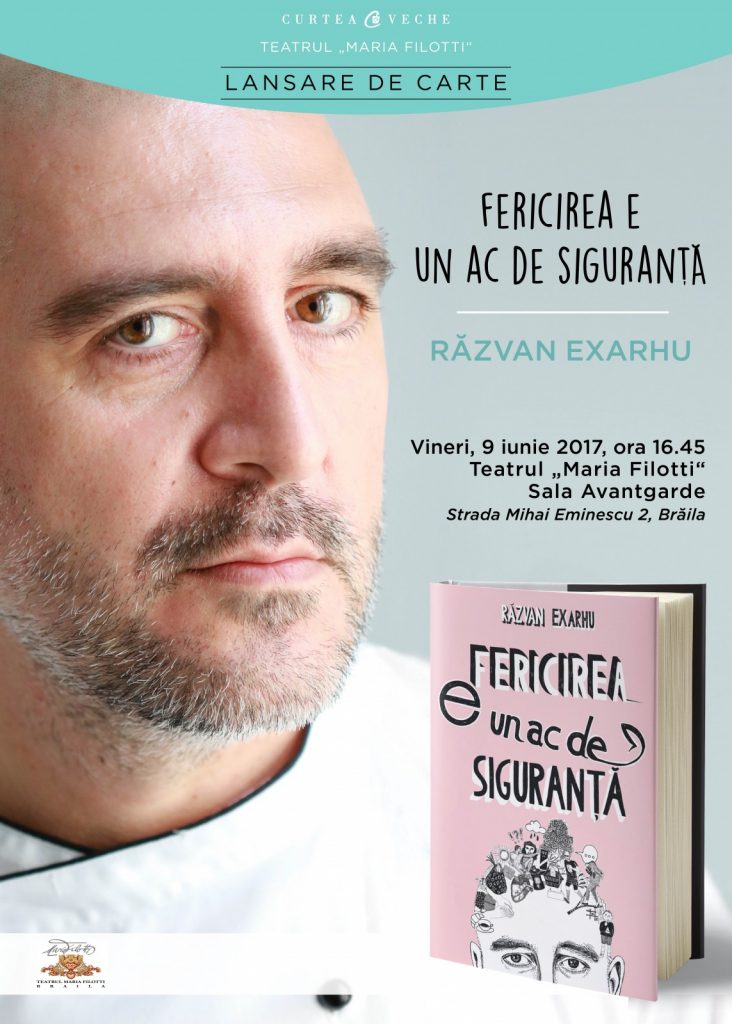 Curtea Veche Publishing şi Teatrul “Maria Filotti” Brăila vă invită vineri, 9 iunie 2017, la o întâlnire cu autorul, povestitorul, ironicul, curiosul, carismaticul Răzvan Exarhu, cu ocazia lansării primei sale cărți, „Fericirea e un ac de siguranță”, cu ilustrații de Andreea Chirică.