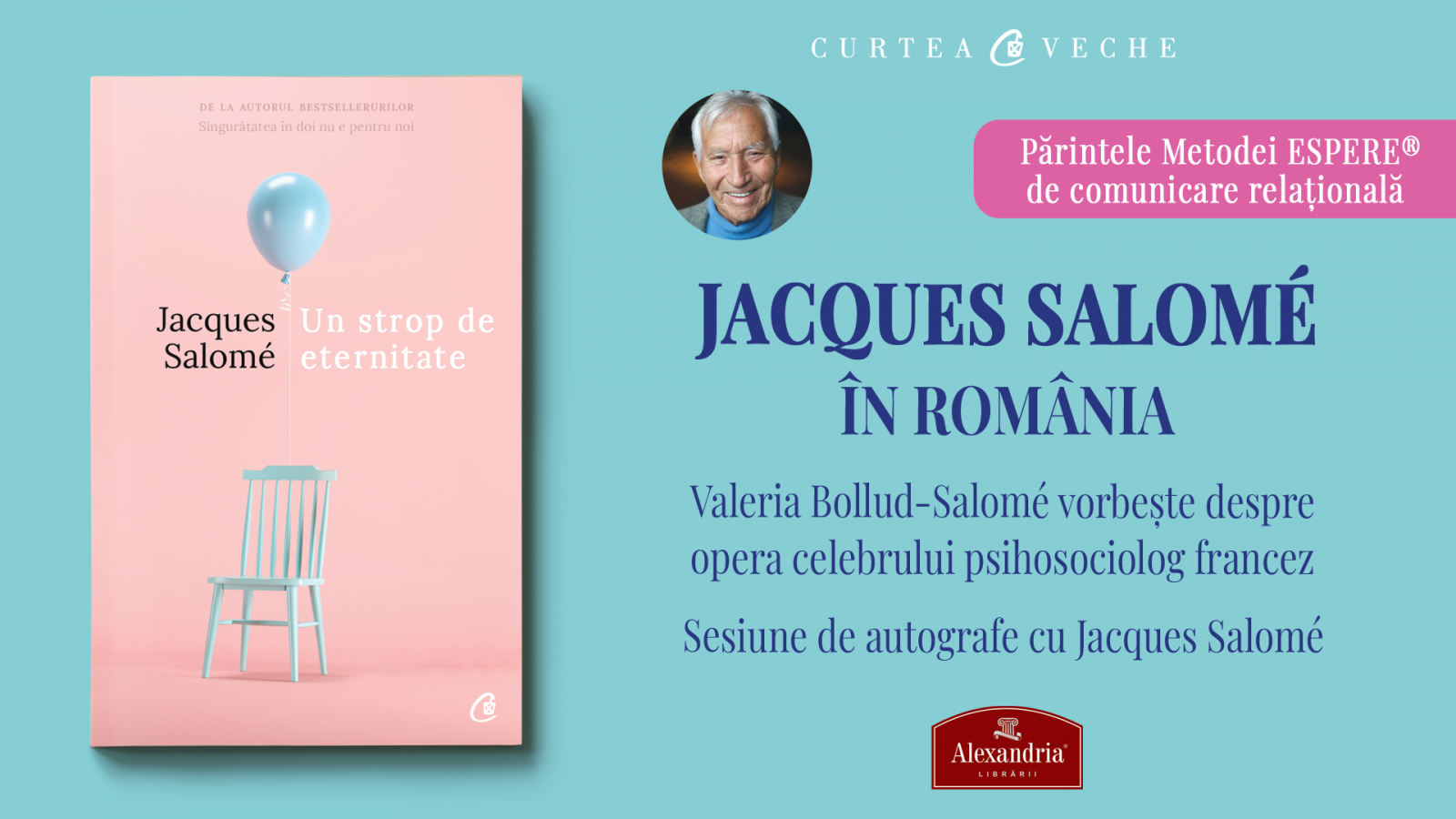 Curtea Veche Publishing are plăcerea de a va invită joi, 24 mai, ora 18:00 la evenimentul de lansare a cărții „Un strop de eternitate” a lui Jacques Salomé în Bistrița-Năsăud, în librăria Alexandria.