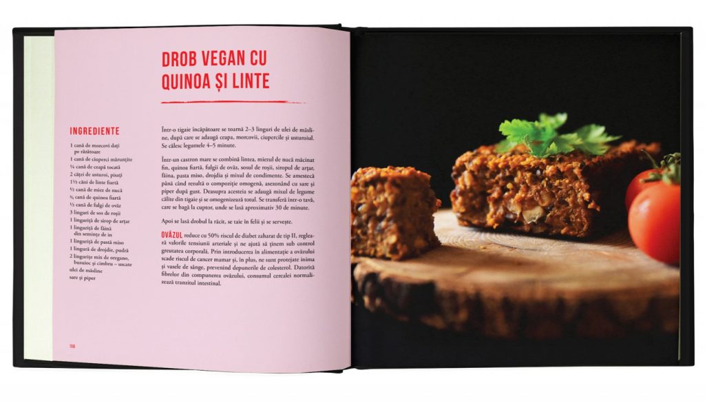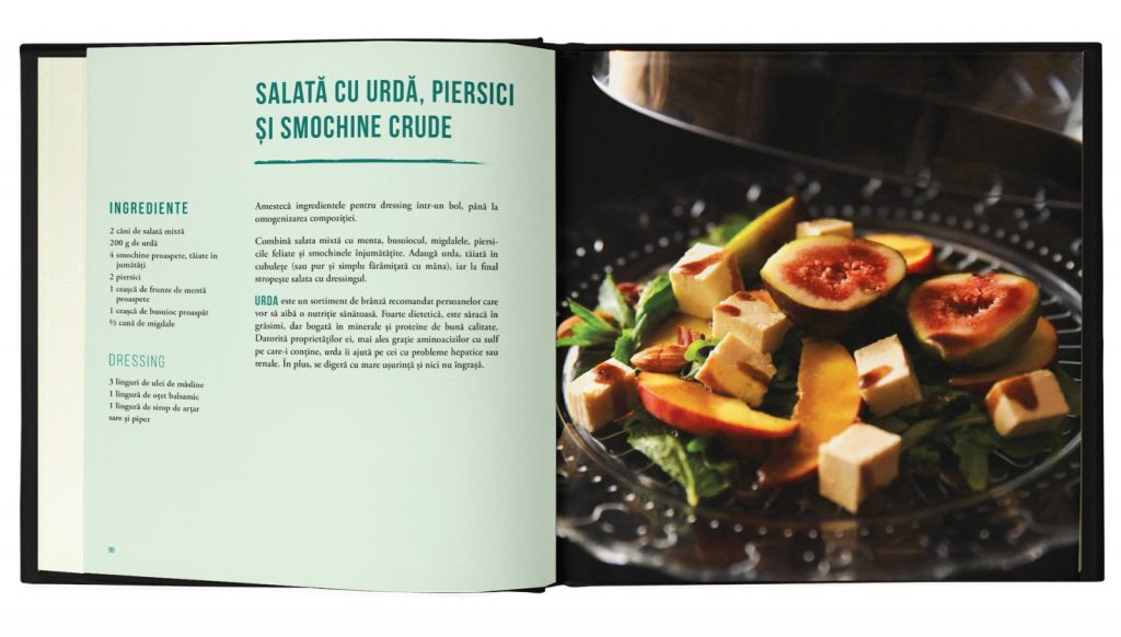 Fiecare reteta este testata si gustata, contine informatii nutritionale usor de inteles, inclusiv cantitatea de legume si fructe, pe langa ultimul capitol, care este plin de sfaturi valoroase: de la cum sa gatesti alaturi de cei mici, la cum sa ii multumesti pe cei pretentiosi, cum sa ai o digestie mai buna, importanta fibrelor, cum sa faci economii si, desigur, cum sa introduci in dieta familiei tale ingrediente mai sanatoase.
