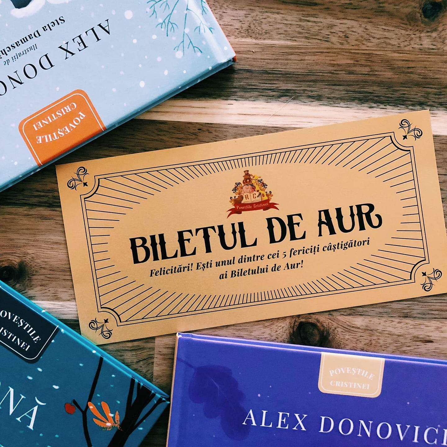 Biletul de Aur îți va aduce, pe viață, toate cărțile care au apărut sau urmează să apară în colecția „Poveștile Cristinei”! În plus, vei fi invitatul nostru de onoare la toate evenimentele organizate de „Poveștile Cristinei” și Curtea Veche Publishing: lansări, concerte, spectacole și un tur privat al editurii!