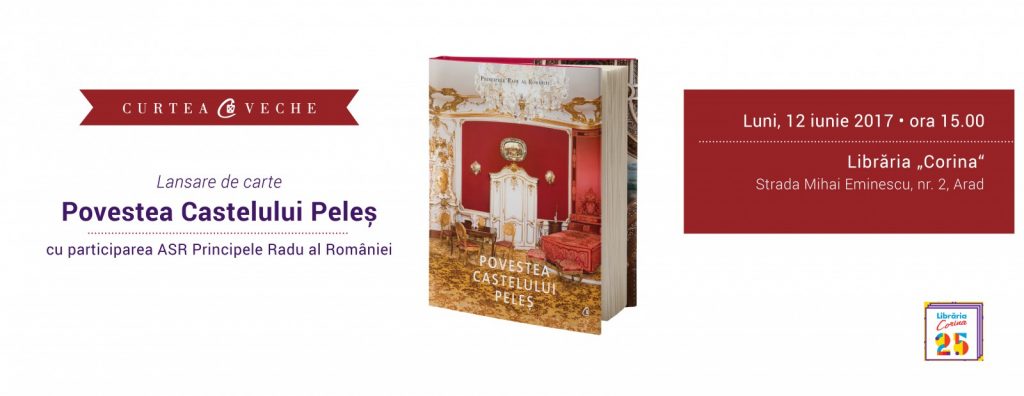 Curtea Veche Publishing vă invită luni, 12 iunie 2017, începând cu ora 15.00, la evenimentul de lansare a cărții-album „Povestea Castelului Peleş”, scrisă de Alteța Sa Regală Principele Radu al României. Evenimentul va fi găzduit de Librăria Corina (str. Mihai Eminescu, nr.2). Prezentarea cărţii va fi urmată de o sesiune de autografe.