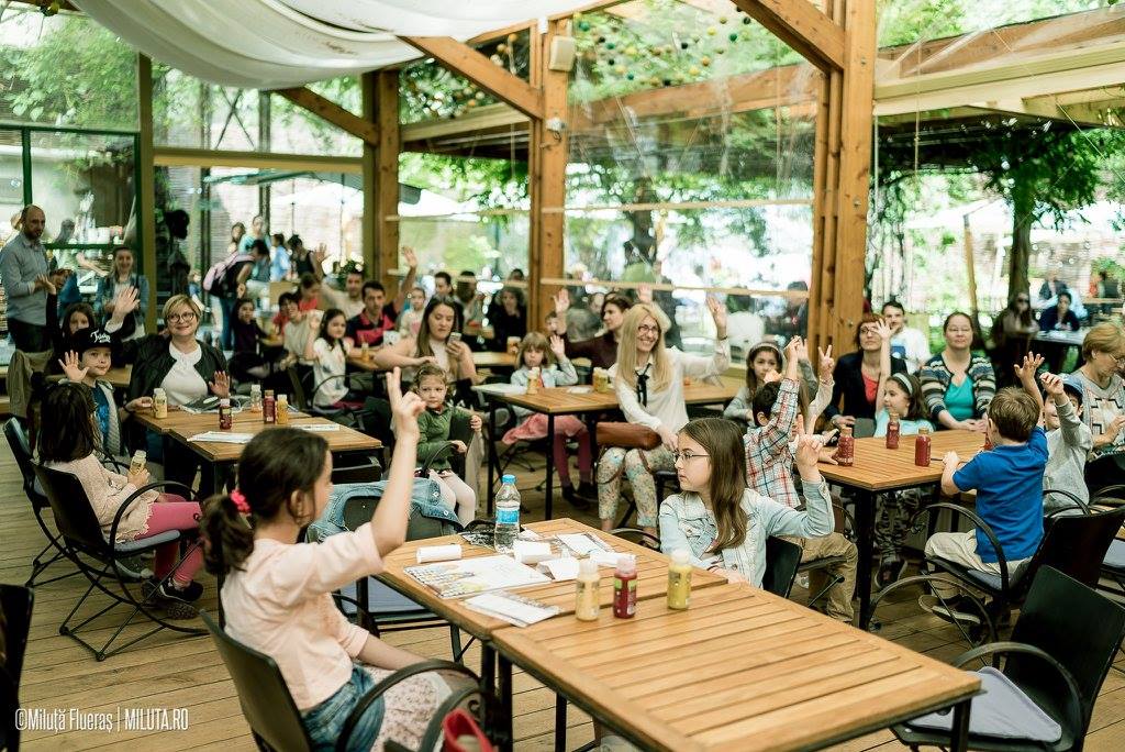 Copiii au participat şi la un mic exerciţiu de desen coordonat de Cristiana Radu, unde s-au întrecut în a ilustra ce ingrediente ar folosi ei în crearea unor vrăji speciale. Am aflat că pentru a zbura ai nevoie de pene de ciocănitoare, că maşinile pot fi mai rapide dacă sunt alimentate cu ciocolată și că fructele pline de vitamine vindecă teama de caracatițe.