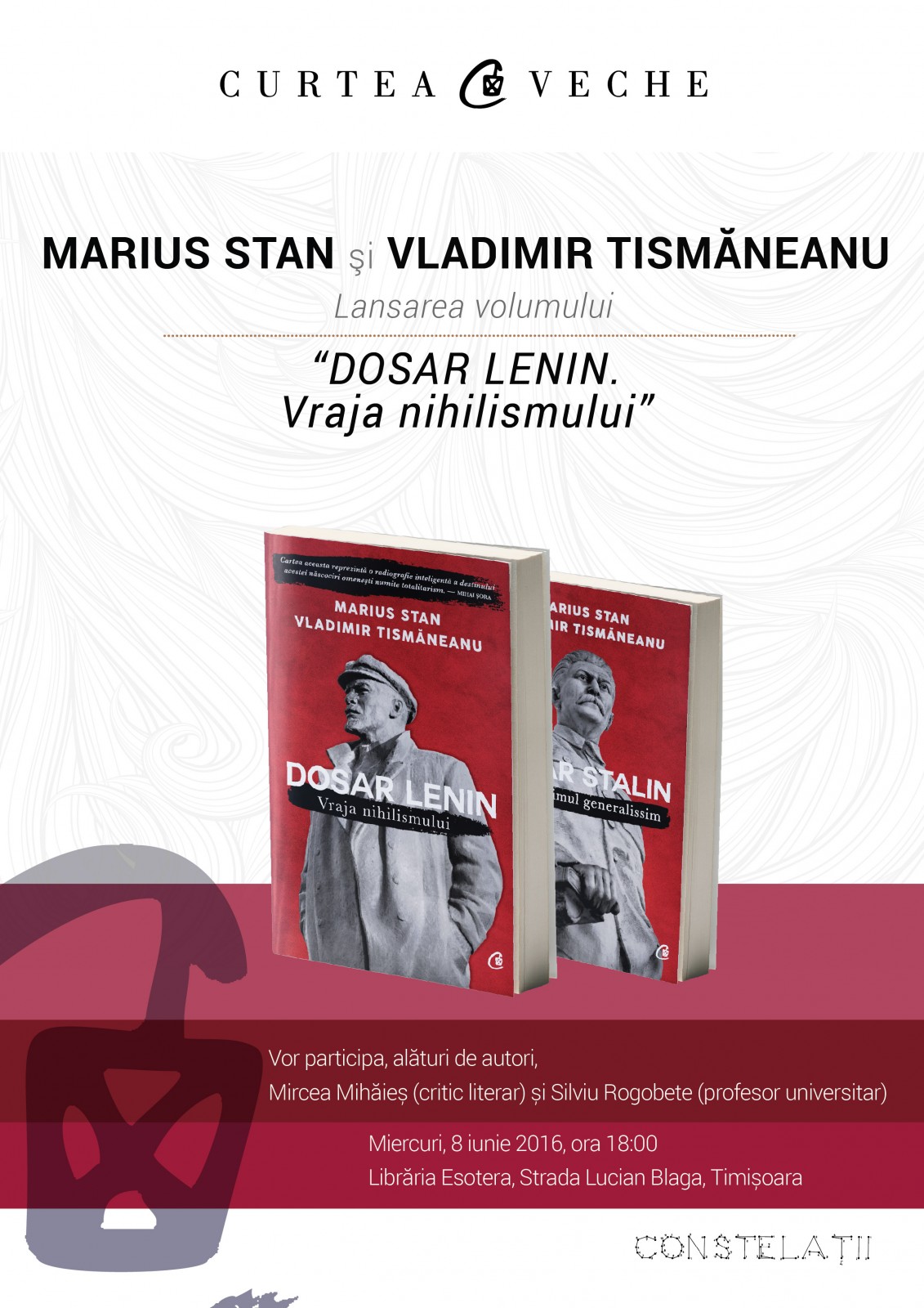 Miercuri, 8 iunie 2016, începând cu ora 18.00, Curtea Veche Publishing și Librăria Esotera vă invită la prezentarea cărții “Dosar Lenin. Vraja nihilismului”, semnată de Marius Stan și Vladimir Tismăneanu, volum apărut la Curtea Veche Publishing ca o continuare a seriei începute prin volumul “Dosar Stalin. Genialissimul generalissim”.